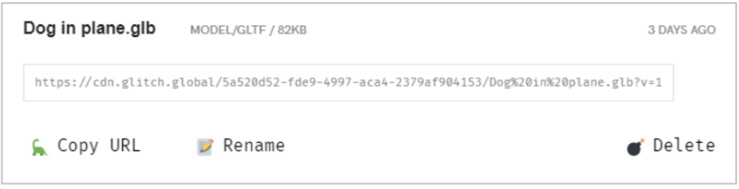 <a-gltf-model src="PASTE YOUR URL INSIDE HERE"></a-gltf-model>
