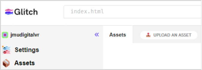 Now, in Glitch, click on Assets in the left menu, then click Upload an Asset: