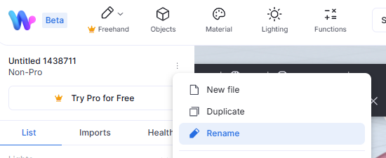 The first thing you should do is name your project. Click on the three dots in the top left corner and select Rename.