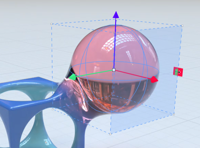 After clicking on an object, you can see three arrows, a box, and some other controls around it.