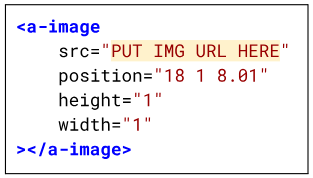 In the position attribute, put the X Y Z coordinates of one of the places from the map. In the src attribute, put the URL of an image that you uploaded to the Assets in Glitch.
