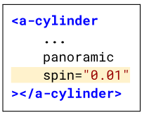 Inside the start tag, after clickable, add a new attribute called spin. This attribute needs a number that tells it how fast to spin.