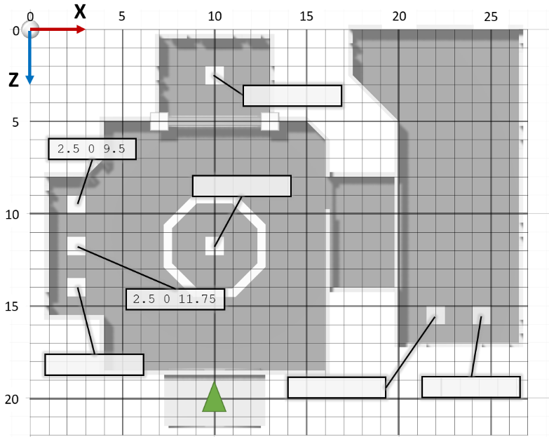 Remember, position is represented by X (left-right) Y (up-down) Z (back-front). The map of the museum below will help you place objects in your VR scenes.